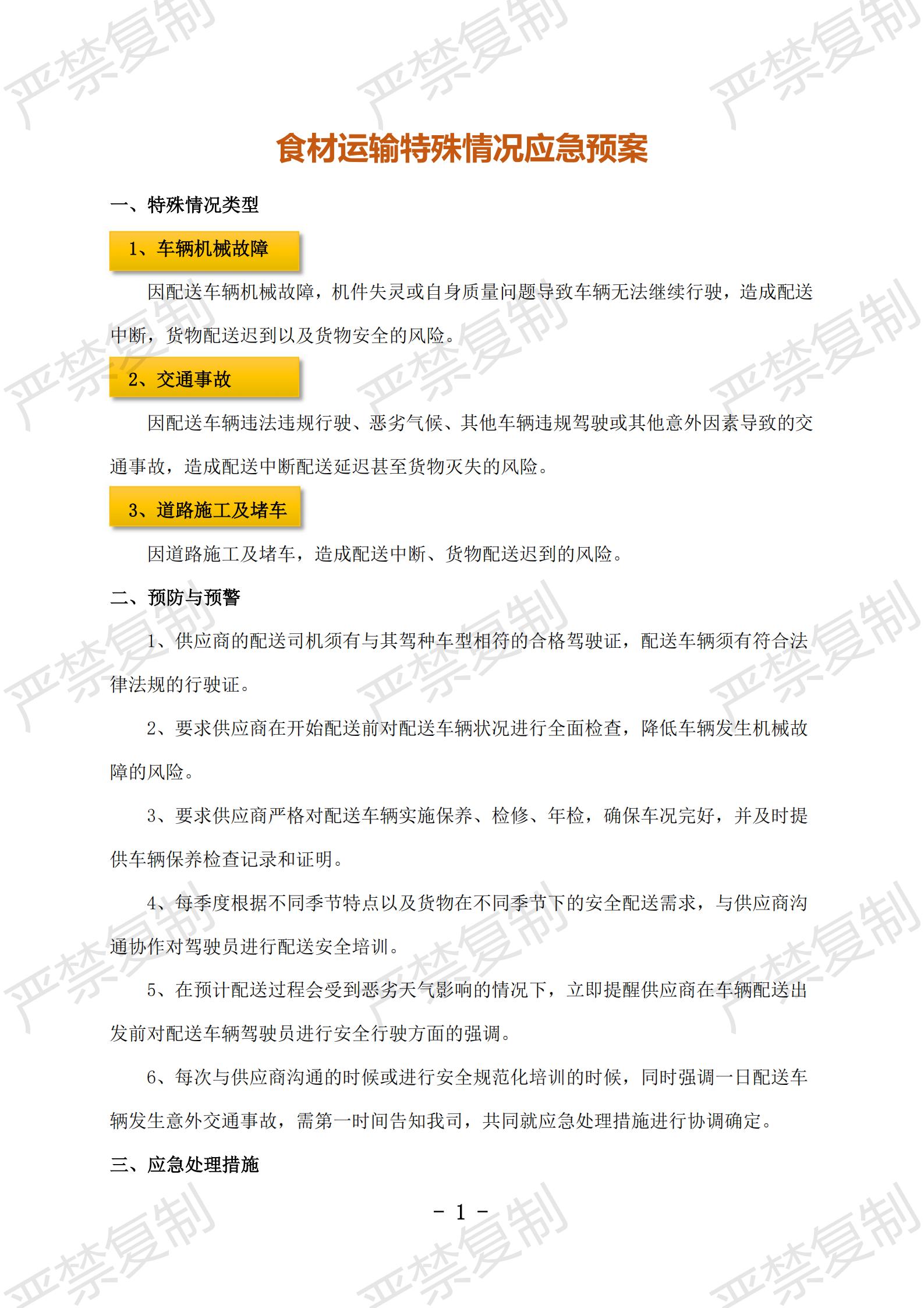 食材運輸特殊情況應急預案